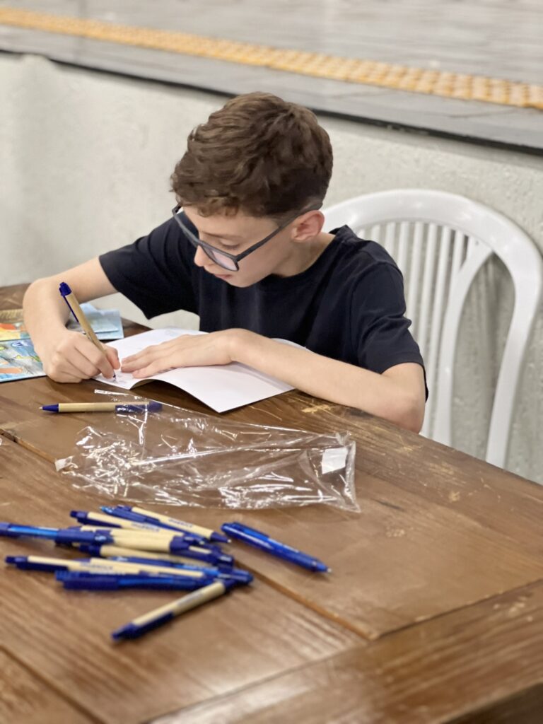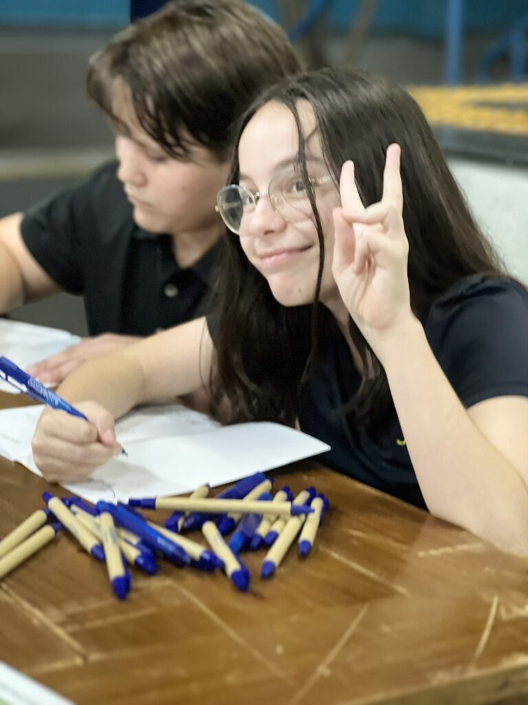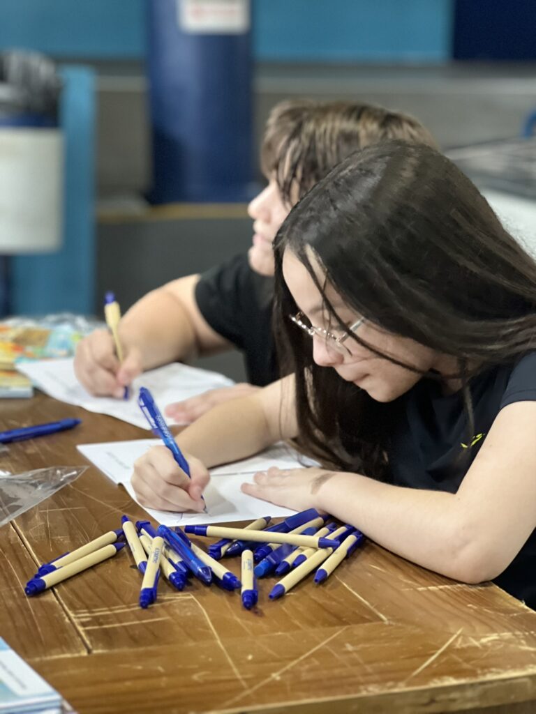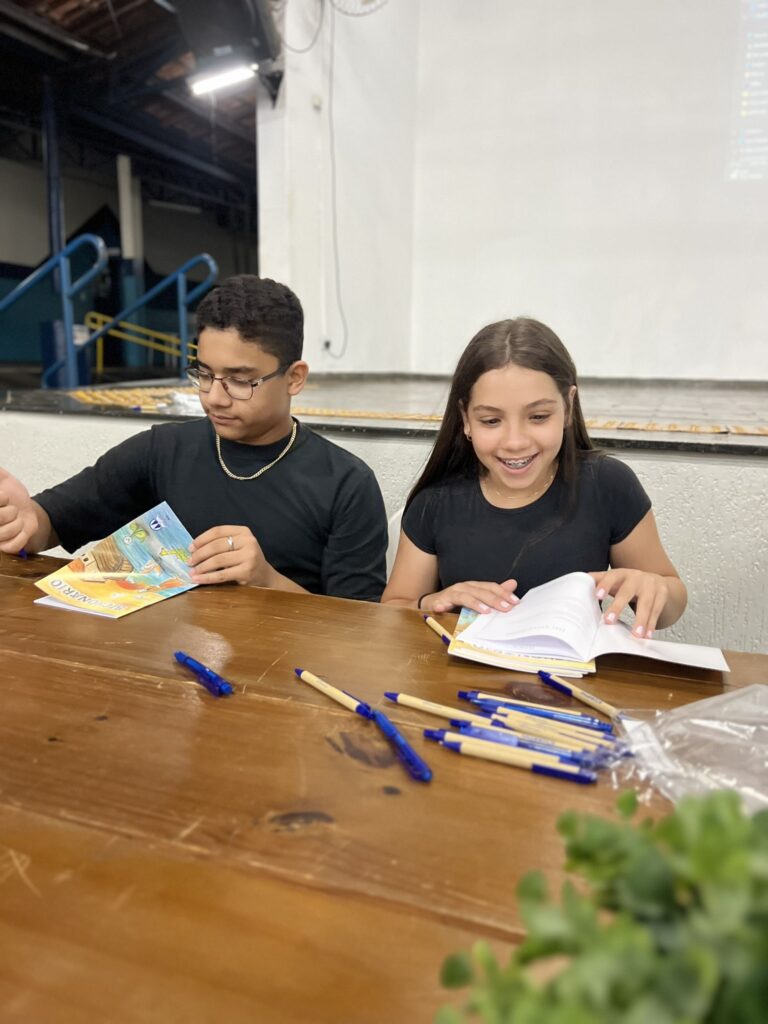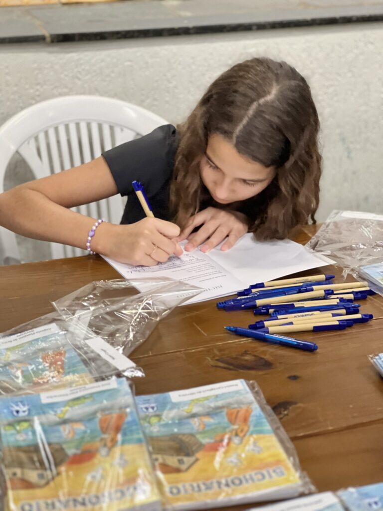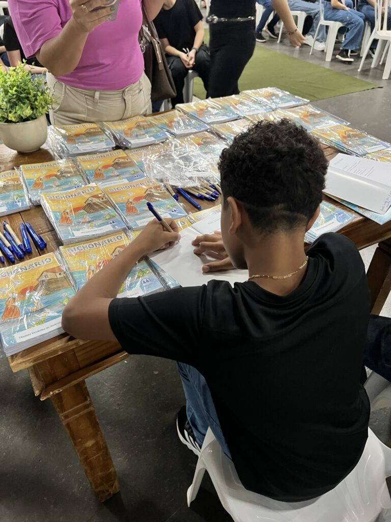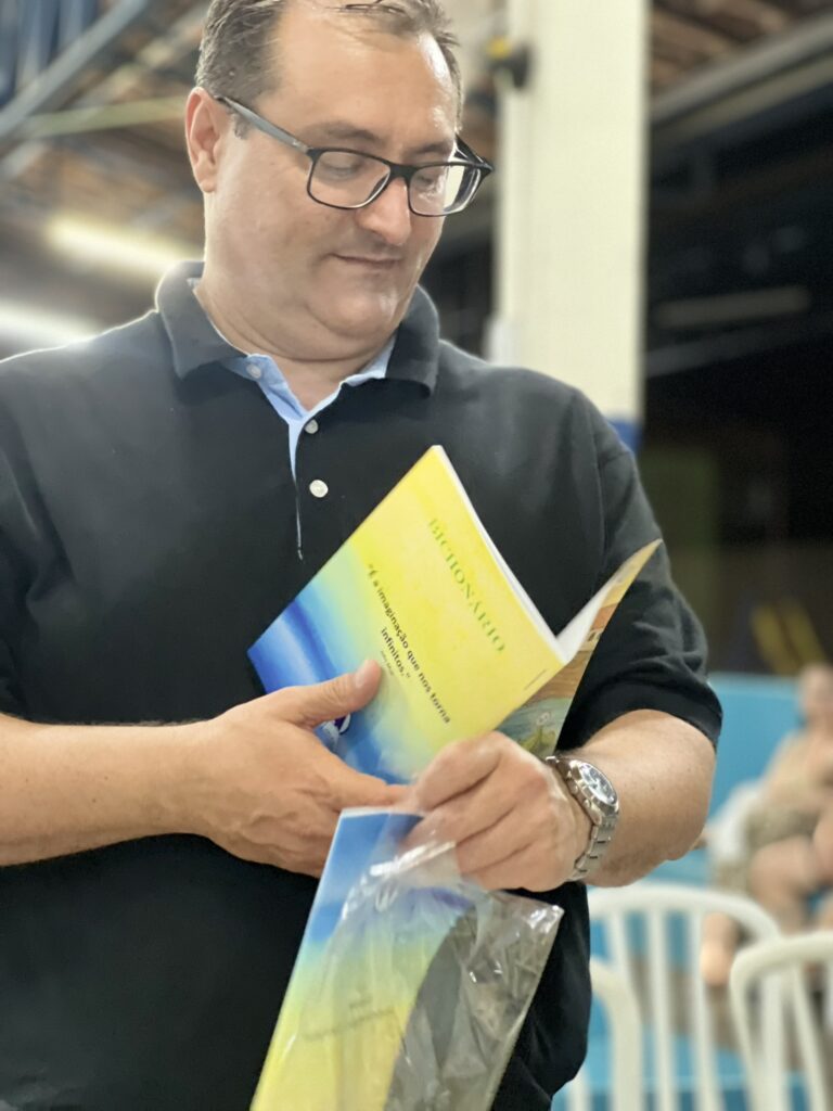 Cada criança autografou seu próprio exemplar, vivendo a experiência de ser autora e protagonista do próprio aprendizado. Foi uma noite cheia de orgulho, sorrisos e fantasia! 💙✍️