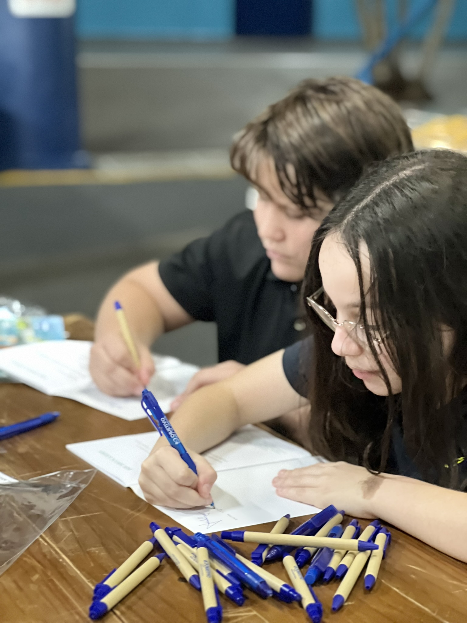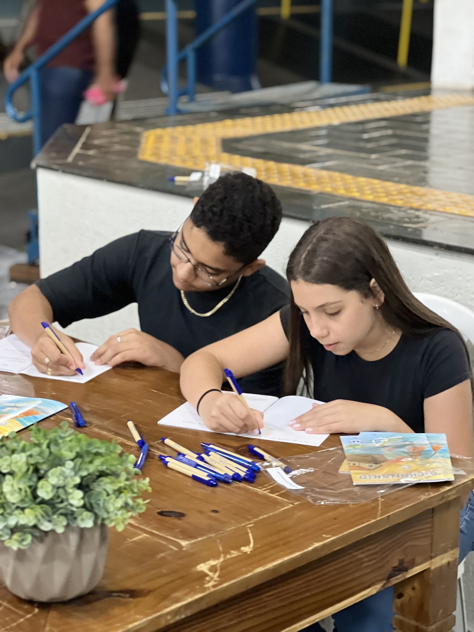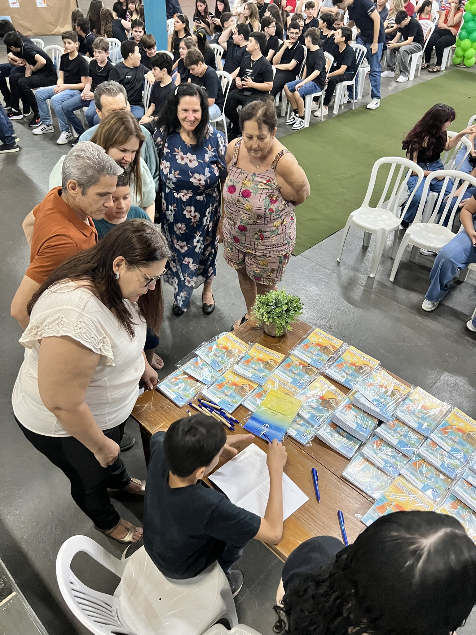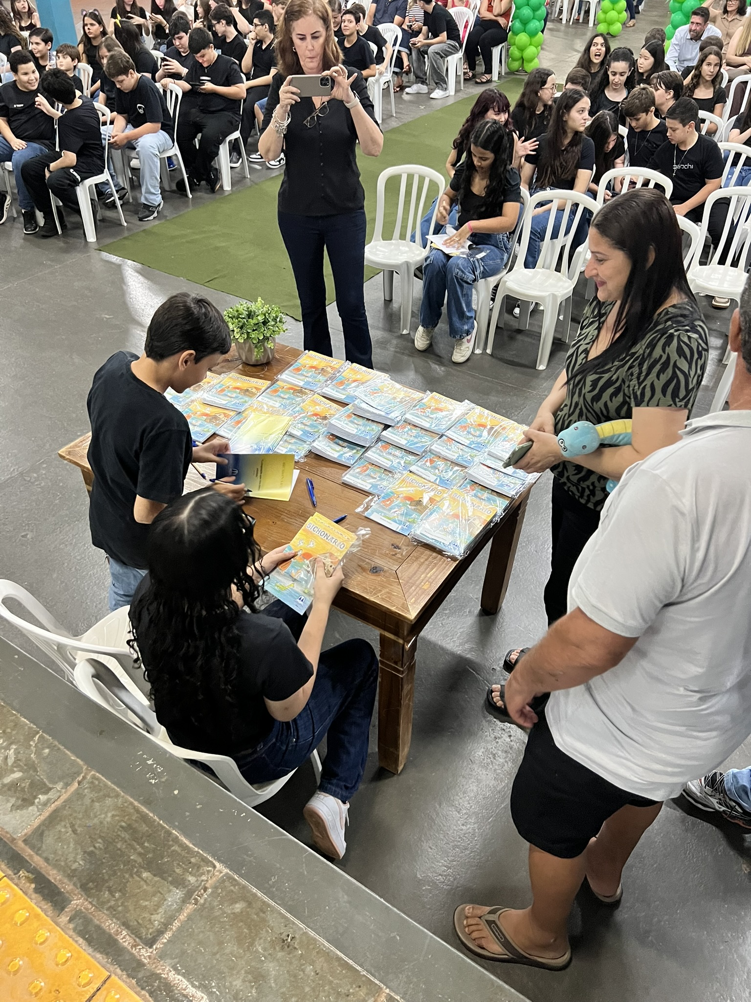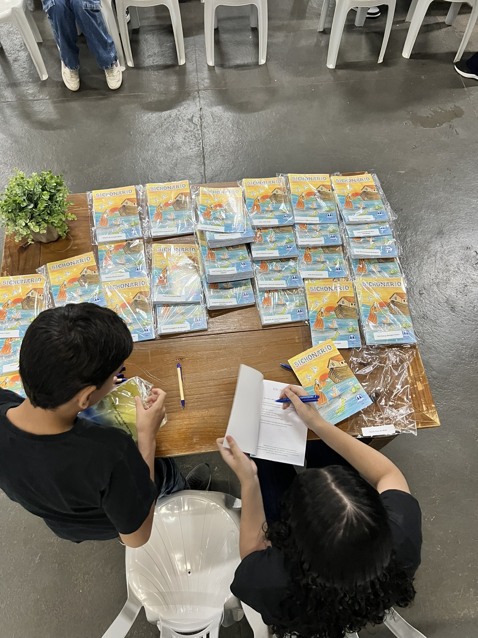 Cada criança autografou seu próprio exemplar, vivendo a experiência de ser autora e protagonista do próprio aprendizado. Foi uma noite cheia de orgulho, sorrisos e fantasia! 💙✍️